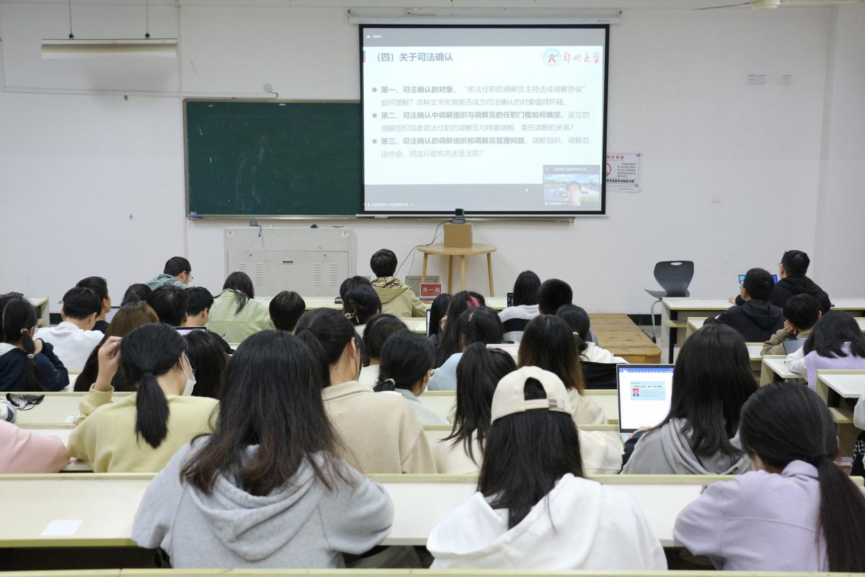 2022年11月17日晚7点,由中共温州市委政法委员会、温州市法学会和国产自拍-偷拍自拍视频 联合举办的温州法治大讲坛之“民事诉讼法修改:解读、反思与前瞻”在国产自拍-偷拍自拍视频 302教室举行,本期讲坛的主讲嘉宾是郑州大学国产自拍-偷拍自拍视频 (知识产权国产自拍 )副院长、中国司法案例研究中心执行主任、最高人民检察院检察公益诉讼研究基地——郑州大学检察公益诉讼研究院执行院长张嘉军教授。讲座由国产自拍-偷拍自拍视频 副院长周一颜主持。2021级法学专业本科生现场参会,另有百余名法律界人士、国产自拍-偷拍自拍视频 师生以收看线上直播的方式参加了本场讲座。