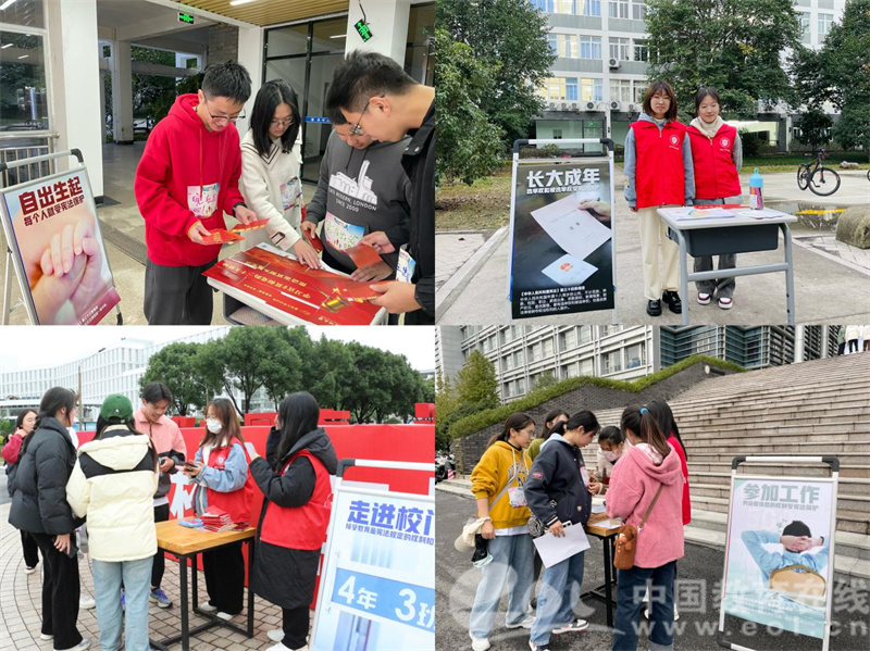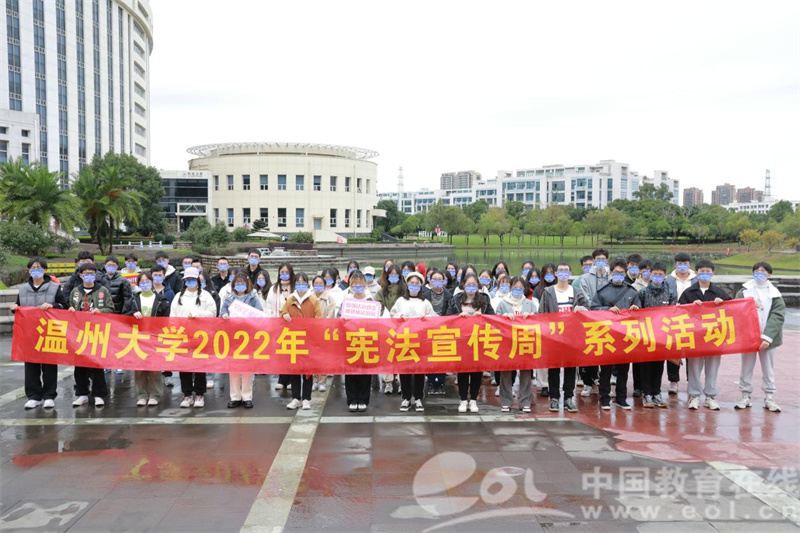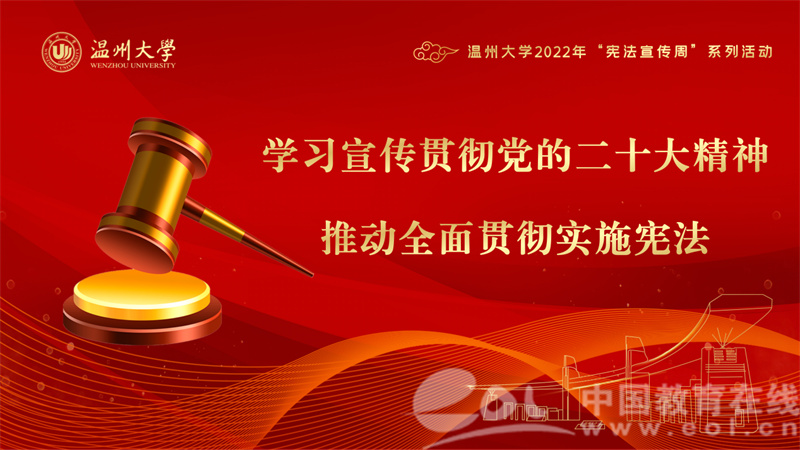 中国教育在线浙江站讯 (记者 占尘雪 通讯员 温大萱)2022年12月4日是第九个国家宪法日,今年也是我国现行宪法公布施行四十周年。为认真学习习近平法治思想,深入贯彻落实党的二十大精神,进一步在青年大国产自拍 中普及宪法知识、弘扬宪法精神、树立宪法权威,国产自拍 组织开展了以“学习宣传贯彻党的二十大精神,推动全面贯彻实施宪法”为主题的宪法宣传周系列活动。从干货满满的宣讲视频到思维碰撞的宪法知识竞赛,从社区、校园普法到国旗下的庄严宣誓,内容丰富、形式多元,为师生带来丰富的宪法宣传活动体验。