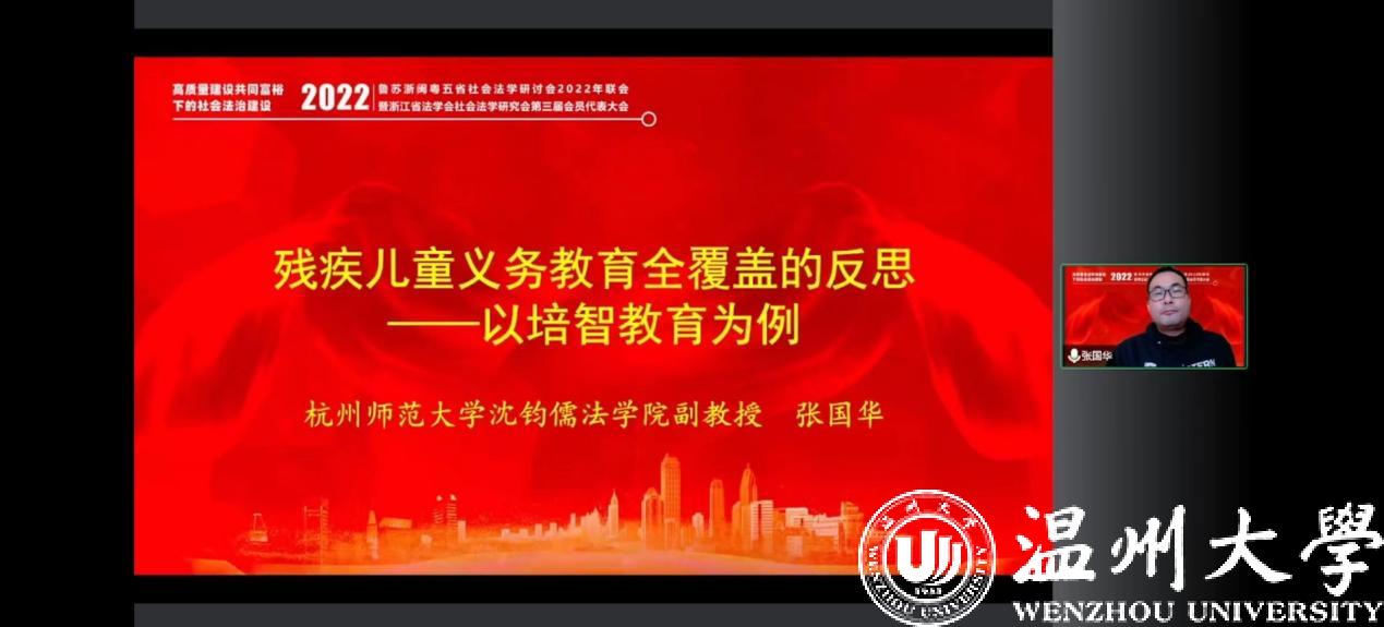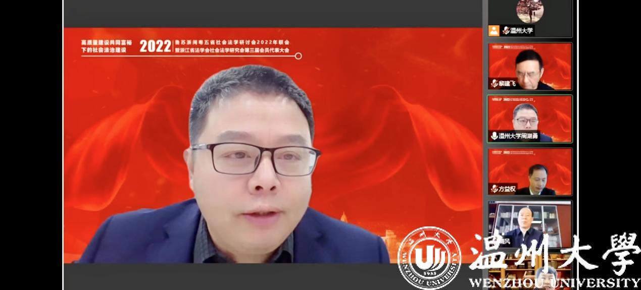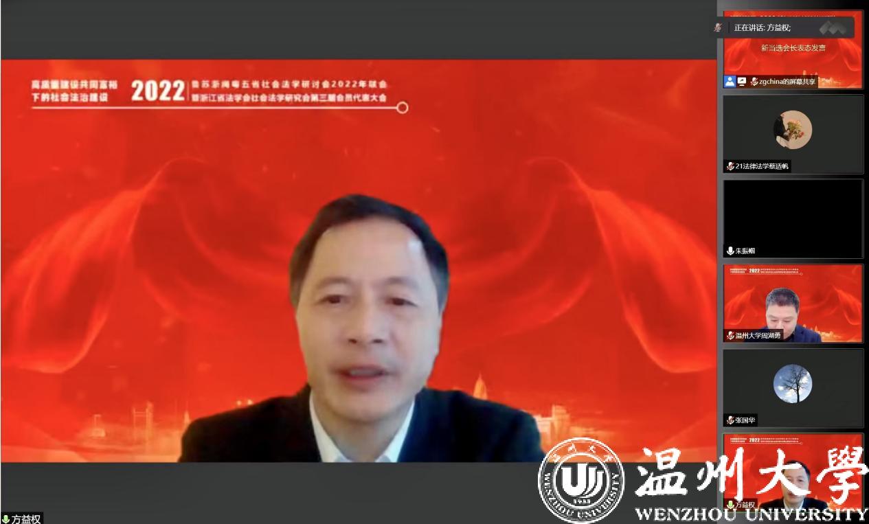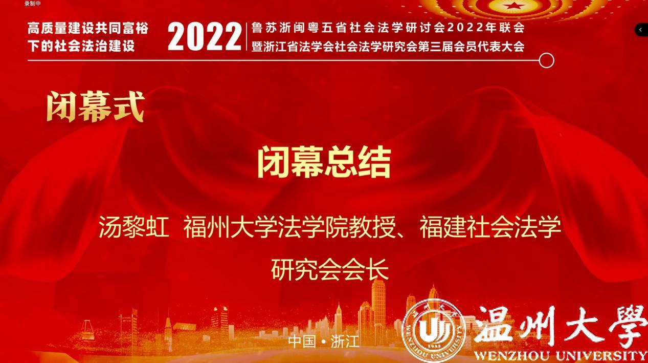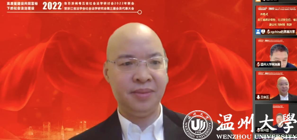 2022年12月11日,由山东、江苏、浙江、福建、广东五省法学会社会法学研究会主办,浙江省法学会社会法学研究会、温州市法学会社会法学研究会、国产自拍-偷拍自拍视频 承办的鲁苏浙闽粤五省社会法学研讨会2022年联会暨浙江省法学会社会法学研究会第三届会员代表大会成功举办。