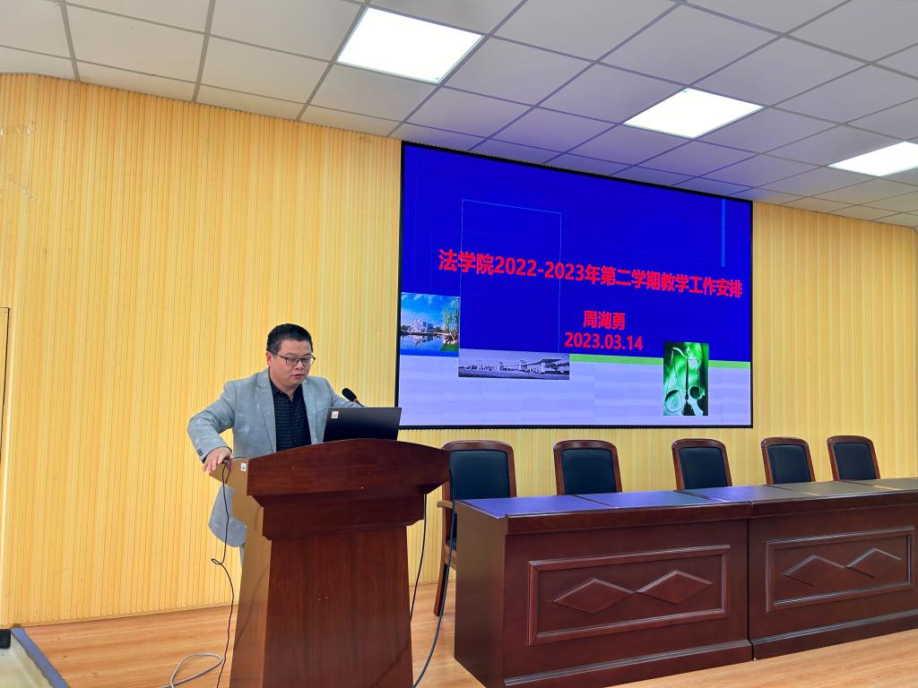 随后,周湖勇副院长作新学期教学工作安排。他指出,本年度国产自拍 教学工作主题为强化专业内涵建设,推进国产自拍 一流本科建设。接着对人才培养方案的修订、基层教学组织考核、教学资源建设、实践教学的改革等重点工作进行安排,提出国产自拍 要根据自身特色实现特色凝练、五育并举。