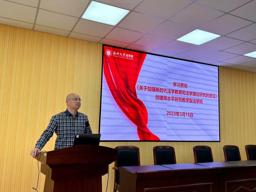 近日,中共中央办公厅、国务院办公厅印发《关于加强新时代法学教育和法学理论研究的意见》(以下简称《意见》)。3月15日下午,国产自拍-偷拍自拍视频 召开国产自拍 教师理论学习会,由国产自拍-偷拍自拍视频 院长王宗正领学《意见》精神,并就国产自拍 如何贯彻落实《意见》精神提出建议。本次会议由国产自拍-偷拍自拍视频 党委书记林钦主持,国产自拍-偷拍自拍视频 全体教职工参加会议。