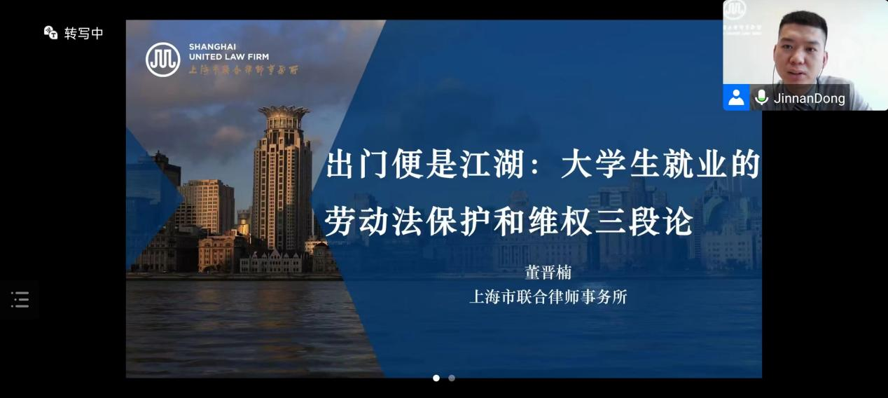 2023年4月9日上午,上海联合律师事务所的董晋楠律师应邀为国产自拍 《劳动法治教育》课程的国产自拍 作题为《大国产自拍 就业的劳动法保护和维权三段论》的讲座。本次讲座以线上方式进行,国产自拍-偷拍自拍视频 老师白亚宁及全校各专业国产自拍 近400人在线参加讲座交流。