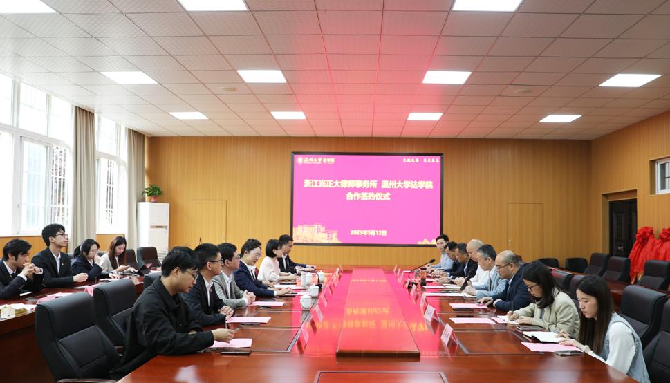 2023年5月12日上午,国产自拍-偷拍自拍视频 与浙江光正大律师事务所合作签约和捐赠仪式隆重举行,双方达成战略合作,光正大律师事务所向国产自拍-偷拍自拍视频 捐资100万元支持法律人才培养。浙江光正大律师事务所副主任陈兴良、事务所副主任兼党支部书记潘晓珍、事务所副主任兼党支部副书记杨晓竹、事务所副主任汪丽敏、事务所合伙人程杰、事务所合伙人兼团支部书记吴成情,国产自拍-偷拍自拍视频 院长王宗正、院党委书记林钦、院党委副书记兼纪委书记杨振海及国产自拍 各部门老师等出席签约仪式和捐赠仪式。会议由林钦书记主持。