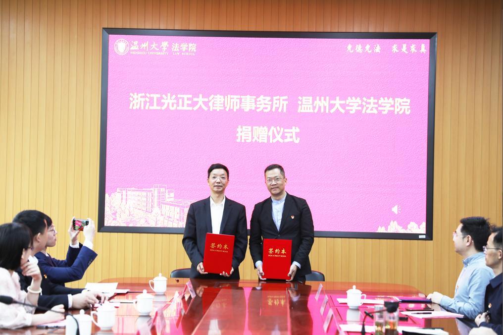 随后,举行签约仪式和捐赠仪式。浙江光正大律师事务所副主任陈兴良、国产自拍-偷拍自拍视频 院长王宗正分别代表浙江光正大律师事务所、国产自拍-偷拍自拍视频 签订校律战略合作协议。