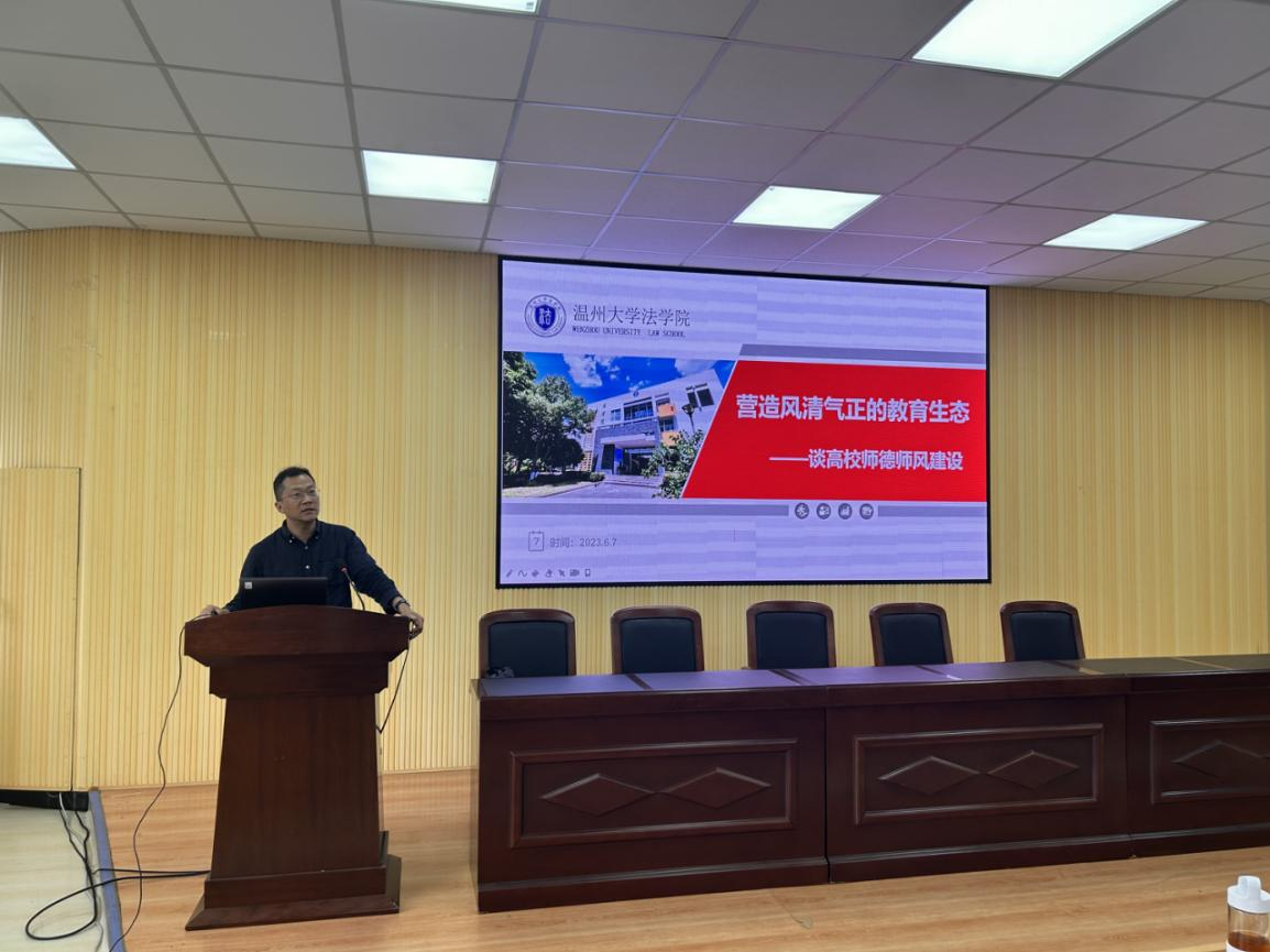 党委副书记杨振海以《营造风清气正的教育生态——谈高校师德师风建设》为题作师德师风廉政教育宣讲。他从习近平总书记考察中国人民大学时的讲话精神、从党和国家重视新时代教师队伍建设看师德师风、从全面从严治党和清廉学校建设看师德师风、从高校师德失范案例中汲取经验与教训四个方面进行宣讲。他重点强调了高校教师7条红线和《关于加强新时代高校教师队伍建设改革的指导意见》在教师队伍建设上的主要体现,并对今年初中共中央办公厅印发的《关于加强新时代廉洁文化建设的意见》做了解读,通过高校师德失范典型案例进行警示,提醒教师在教学、国产自拍 、经费管理与使用、师生关系、违法行为等方面保持清醒头脑,杜绝师德违法违规行为。