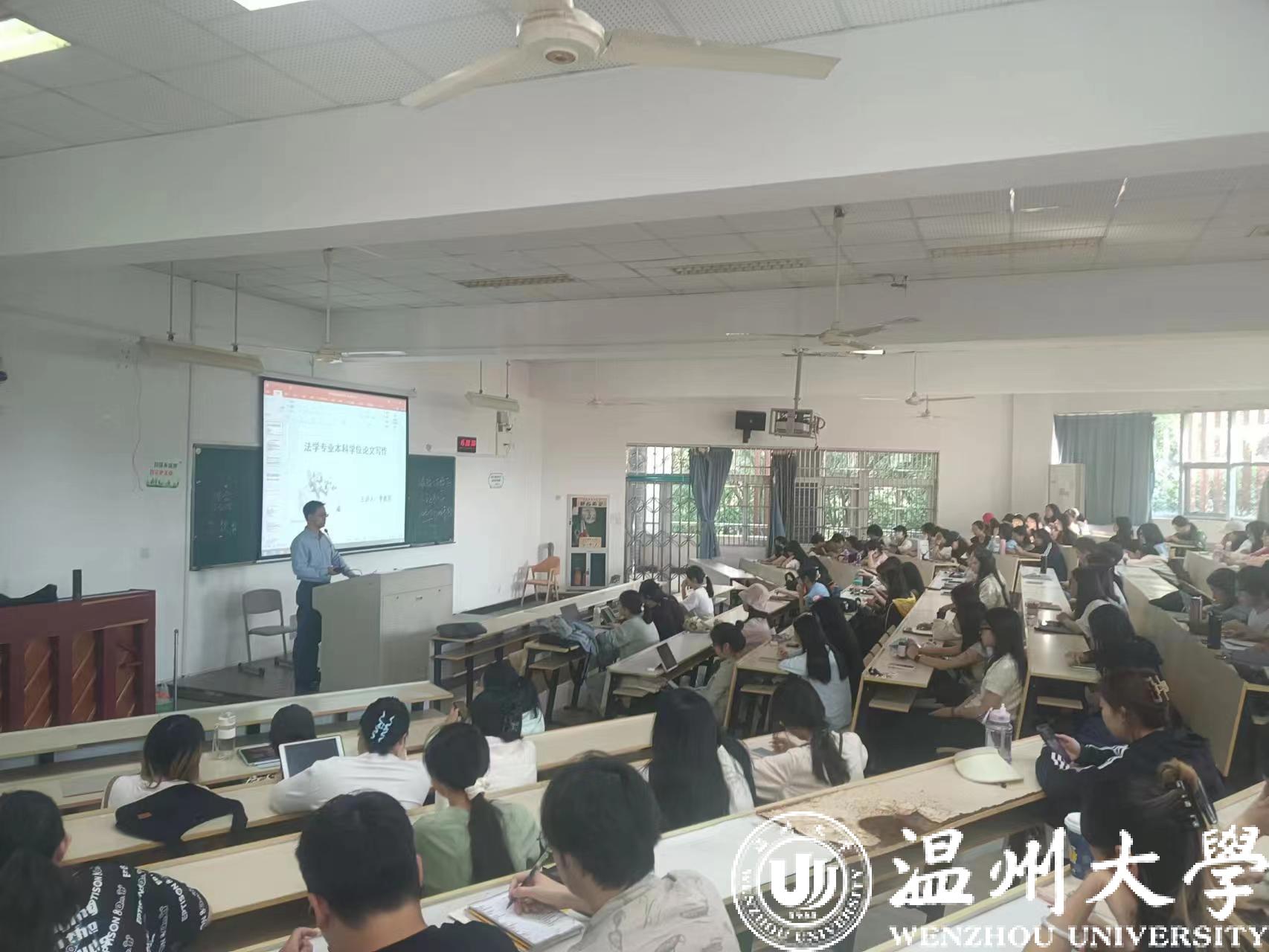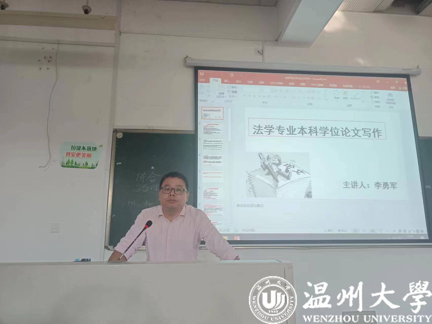 最后,李勇军老师以“法学专业本科学位论文写作”为题目向国产自拍 介绍如何撰写一篇本科毕业论文,包括论文选题、开题报告、正文撰写、格式规范等需要注意的要点,并向同学们展示了往届的优秀毕业论文。