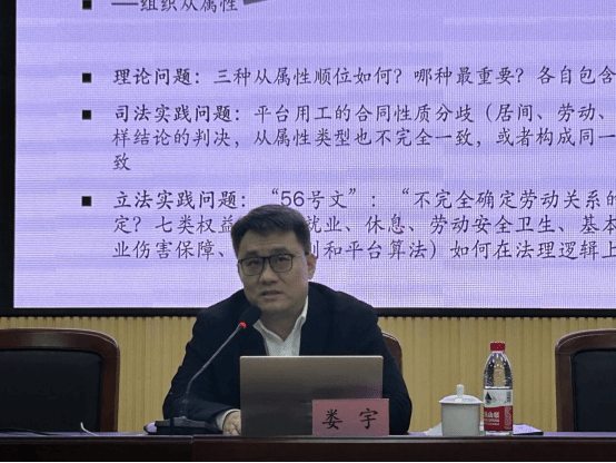 在互动环节,对于师生们提出的工资是否可以得到社会补偿的兜底性补偿,算法下的集体协商制度能否得到反垄断法的豁免,新业态的劳动基准与社保制度如何构建等问题,娄宇教授一一予以回应交流。最后,娄宇教授劝诫研究生应当关注真实发生和具有理论价值的问题,而不是洞穴奇案。研究也要“小题大做”,比如平台用工问题虽小,但是映射的基础理论大,具有理论价值。