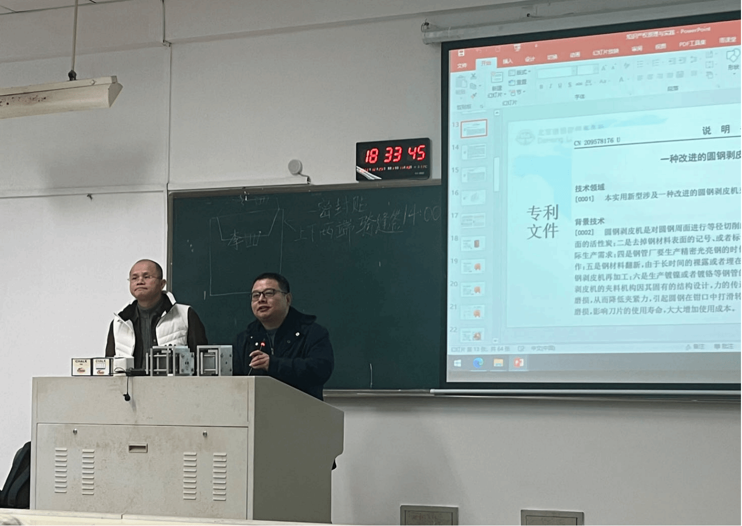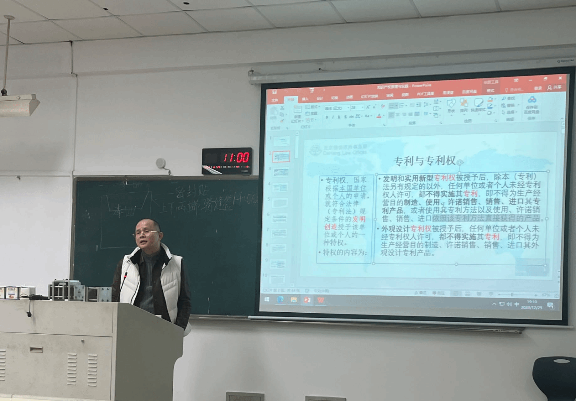 12月25日晚,北京德恒(温州)律师事务所合伙人石圣科博士应邀莅临国产自拍-偷拍自拍视频 ,在302教室为师生作题为《专利与专利权》的讲座,包括行政管理、法律等专业在内的100余位本科生、研究生到场参加。国产自拍-偷拍自拍视频 周湖勇教授主持讲座,热烈欢迎石博士的到来。