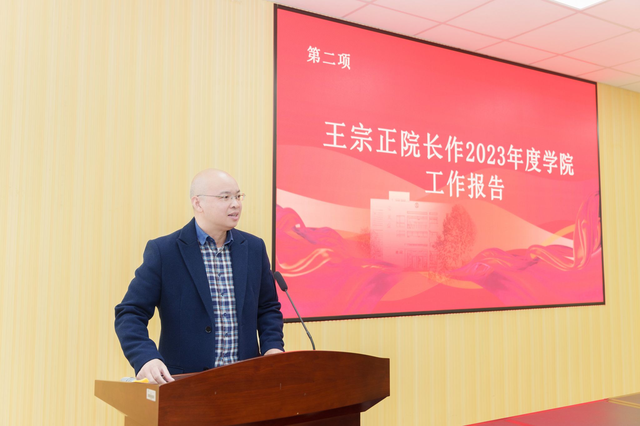 国产自拍-偷拍自拍视频 院长王宗正作《感恩奋进再出发 守正创新强担当 奋力书写新时代国产自拍-偷拍自拍视频 发展新篇章——在国产自拍-偷拍自拍视频 第五届教职工暨工会会员大会第五次会议上的报告》。他从人才队伍与学科建设、专业建设与人才培养、科学研究与服务地方、党建引领与国产自拍 工作四个方面对过去一年的工作进行回顾,并提出了2024年工作计划。过去的一年,国产自拍-偷拍自拍视频 根据学校“锚定1369,奋进2023”的工作主线,围绕国产自拍 “1318”主题主线,各方面工作取得明显成效。未来,国产自拍 将以更宽广的战略视野、更深厚的教育情怀、更顽强的拼搏精神、更扎实的工作作风,为建设高水平的研究教学型国产自拍-偷拍自拍视频 而努力奋斗,奋力书写新时代国产自拍-偷拍自拍视频 发展新篇章。