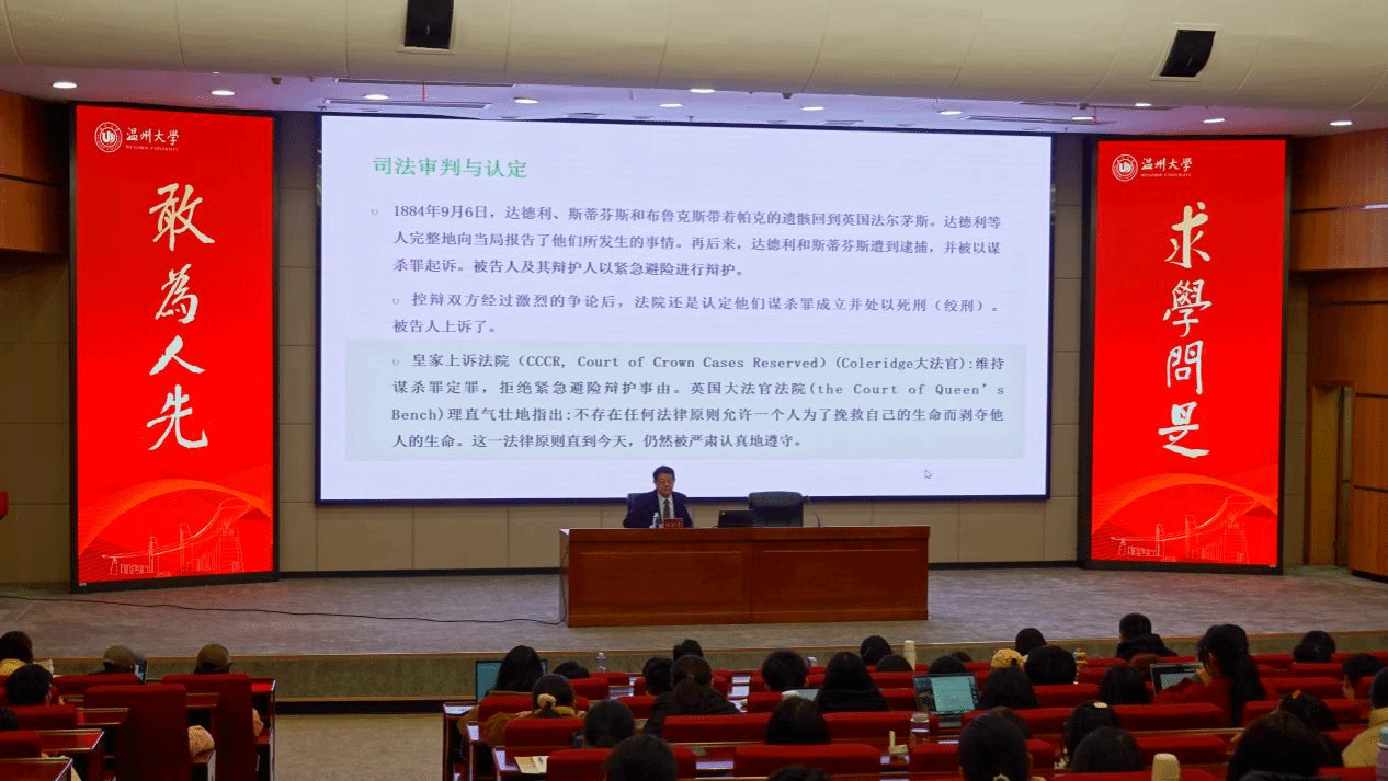 首先,谢望原教授从“帮助自杀是否构成犯罪”等问题为切入点,精炼地说明了两大法系刑法规定的差异,进而引出本场讲座的主要内容,即通过比较研究的方法,分析两则英国刑法的经典案例,并结合我国的立法规定和司法实践,探讨我国关于“对生命避险行为之定性”的既有观点和处理方案,为正确定罪和妥当量刑提供助力。