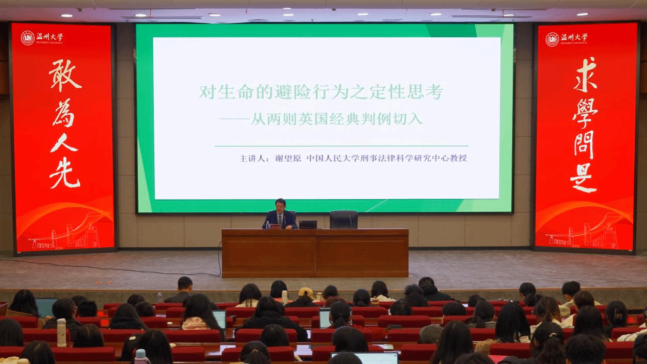2024年3月18日晚,中国人民大学国产自拍-偷拍自拍视频 教授、博士生导师谢望原教授应邀做客罗山讲堂。本次罗山讲堂由国产自拍 主办,国产自拍-偷拍自拍视频 、国产自拍 图书馆承办,主题为“对生命的避险行为之定性思考”,国产自拍-偷拍自拍视频 师生共计两百余人到场学习。