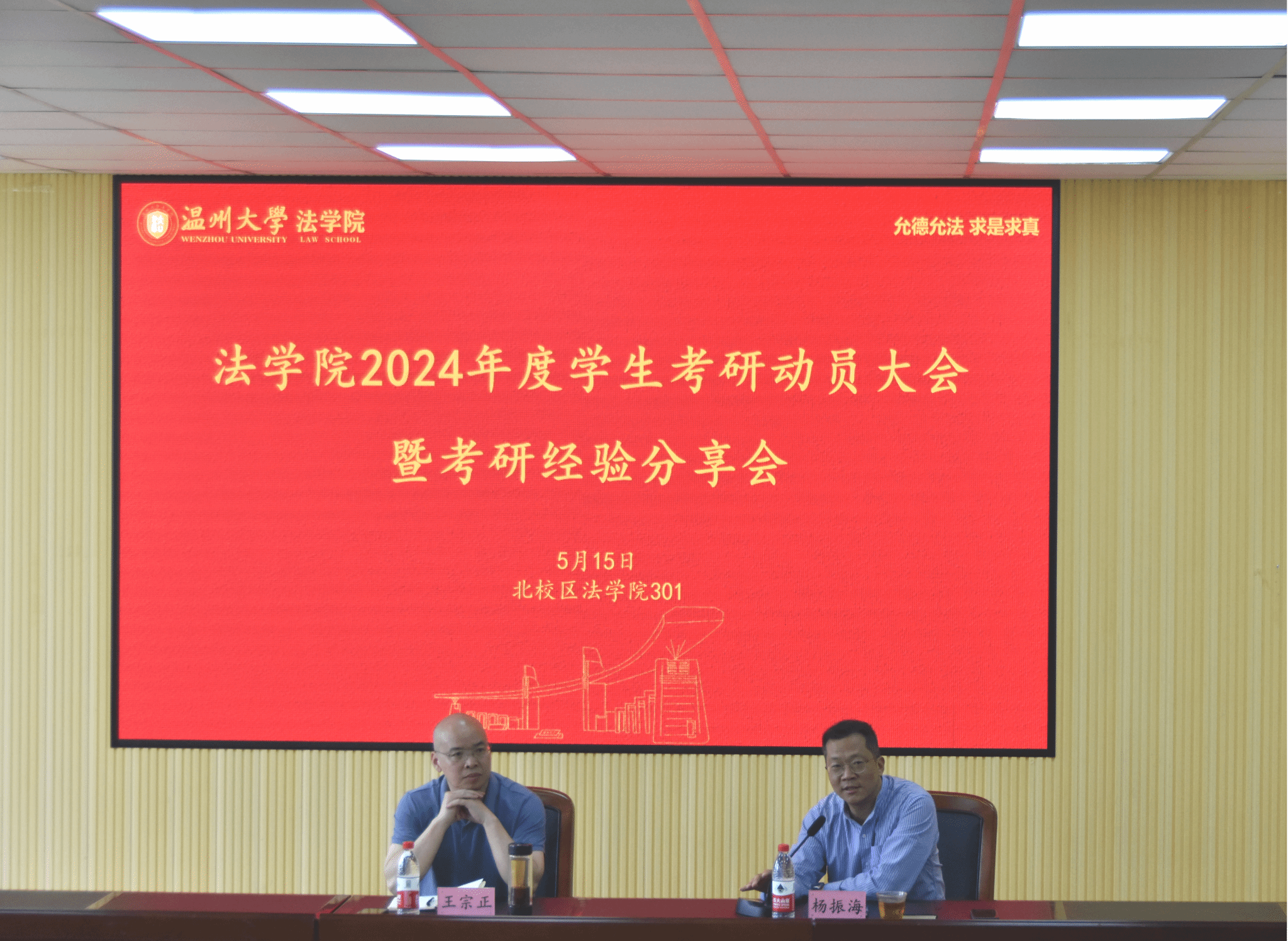 5月15日下午,国产自拍 于北2-301会议室举行国产自拍-偷拍自拍视频 2024年度考研动员大会暨考研经验分享会。本次大会由国产自拍-偷拍自拍视频 党委副书记杨振海主持,国产自拍-偷拍自拍视频 院长王宗正作动员讲话,2024届升学代表作经验分享。