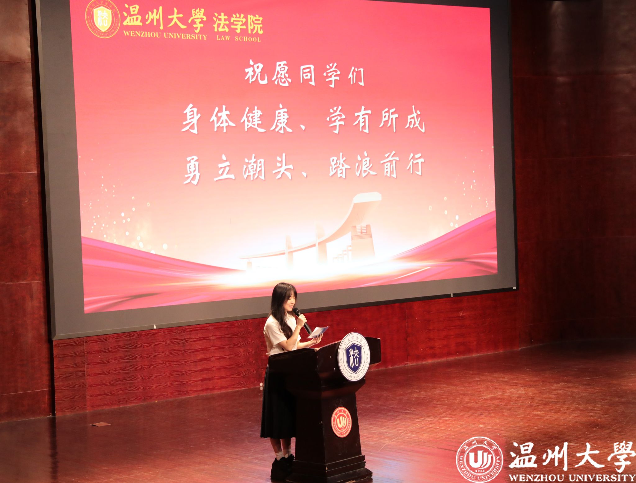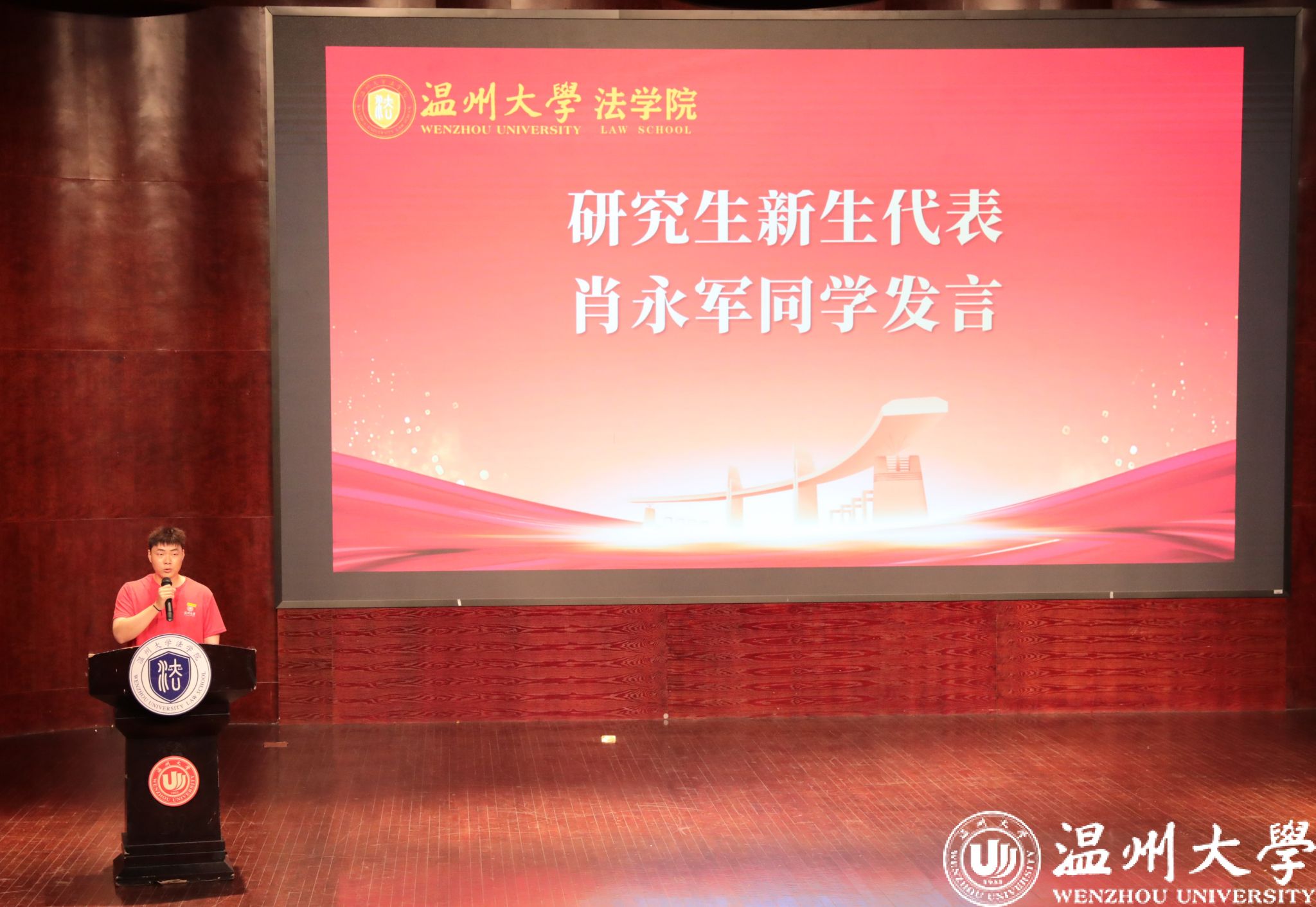 本科新生代表吴文熙分享了自己初到温大的感受,表达了对专业学习的热情、对大国产自拍 活的向往与憧憬以及立志成才的决心,也倡议同学们专注研习学科知识,注重自身全面发展,在迎接挑战的同时,收获细碎璀璨的成长和与未来切磋的勇气。