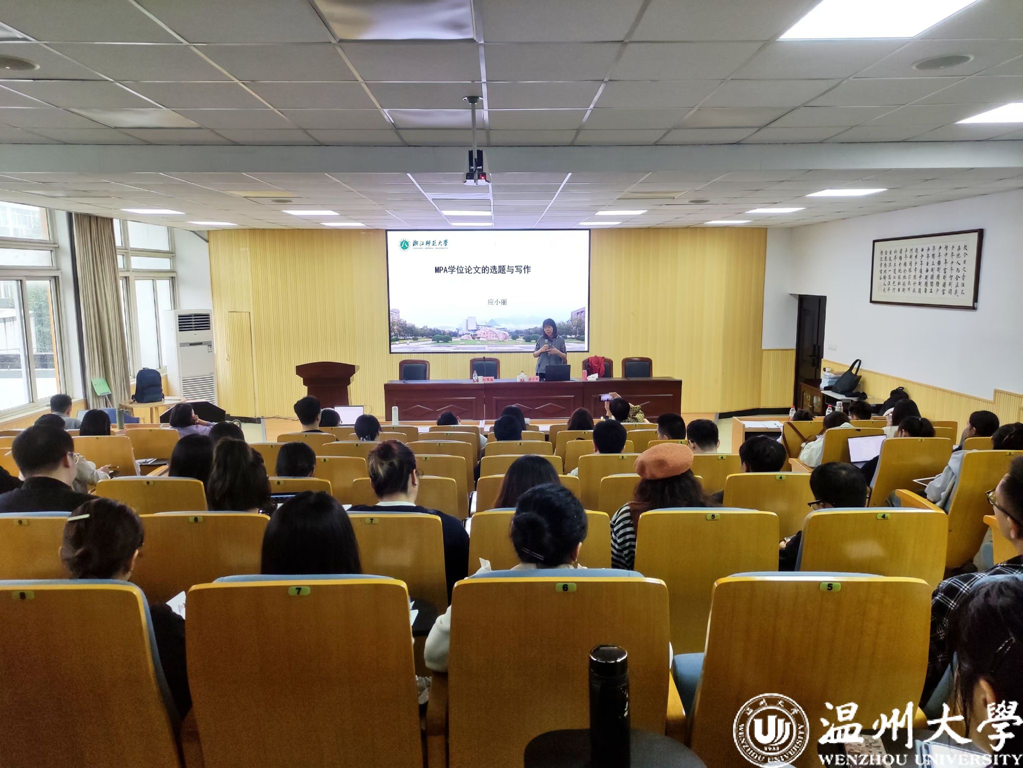 10月26号上午,浙江师范大学教授、硕士生导师,浙江师范大学公共管理学一级学科负责人,浙江省公共管理学会副会长、浙江省中青年学科带头人应小丽教授在国产自拍-偷拍自拍视频 301会议室为国产自拍 师生带来题为《MPA学位论文的选题与写作》的讲座。国产自拍-偷拍自拍视频 MPA学位点负责人付翠莲教授主持讲座,国产自拍 教师和MPA专业国产自拍 八十余人到场学习。
