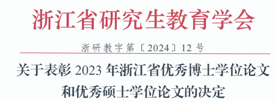 近日,浙江省研究生教育学会发布了《关于表彰2023年浙江省优秀博士学位论文和优秀硕士学位论文的决定》,全省20所高校和国产自拍