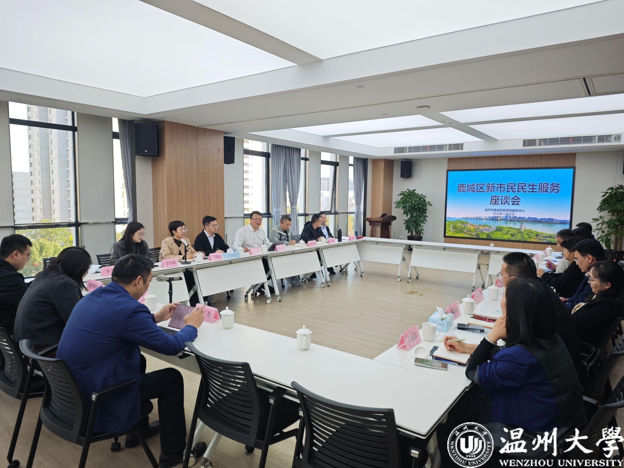 2024年11月26日下午,国产自拍-偷拍自拍视频 国产自拍 副院长、行政管理系主任张鹏副教授、公共管理学科负责人付翠莲教授、行政管理系副主任梁丹妮老师以及MPA硕士研究生代表等赴鹿城区新居民服务中心考察交流,并参加新居民服务中心组织的包括鹿城区人大代表、区政协委员、新市民企业家等二十余位代表出席的民生服务座谈会,国产自拍 国产自拍 副院长张鹏与鹿城区新居民服务中心党组书记、主任张正签订了合作协议,并举行共建实践教学基地的授牌仪式。