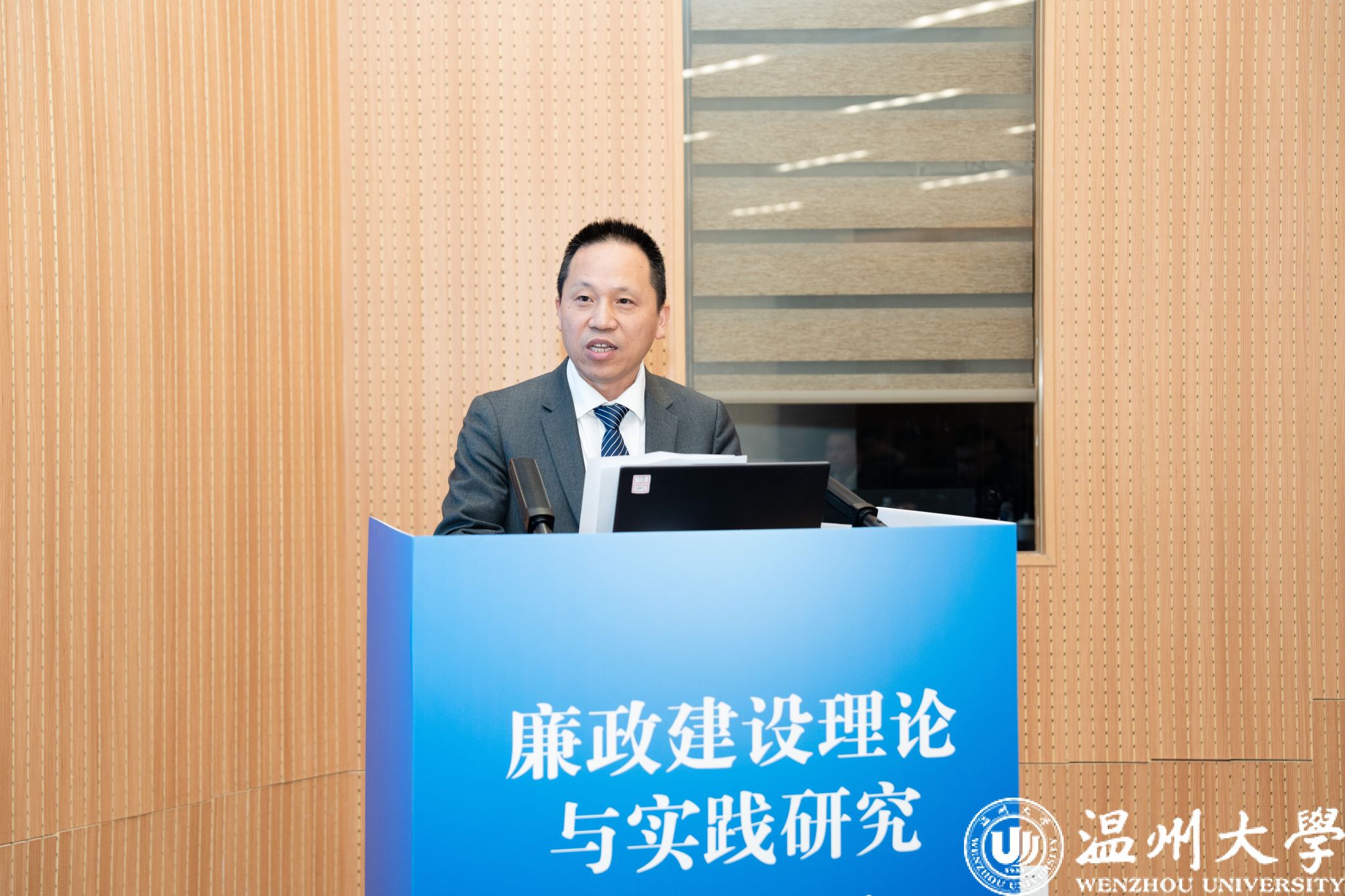 为了深入推进新时代廉政建设理论与实践创新,推动理论与实践的双向赋能,11月30日上午,“廉政建设理论与实践研究”国产自拍 研讨会在国产自拍 隆重举行。国产自拍 副校长、党委委员王舜,国产自拍 党委委员、纪委书记、省监委驻温大监察专员李都金,温州市纪委副书记、市监委副主任张宏琴,温州市社科联党组成员、副主席、市社科院副院长叶雪影等领导出席研讨会。