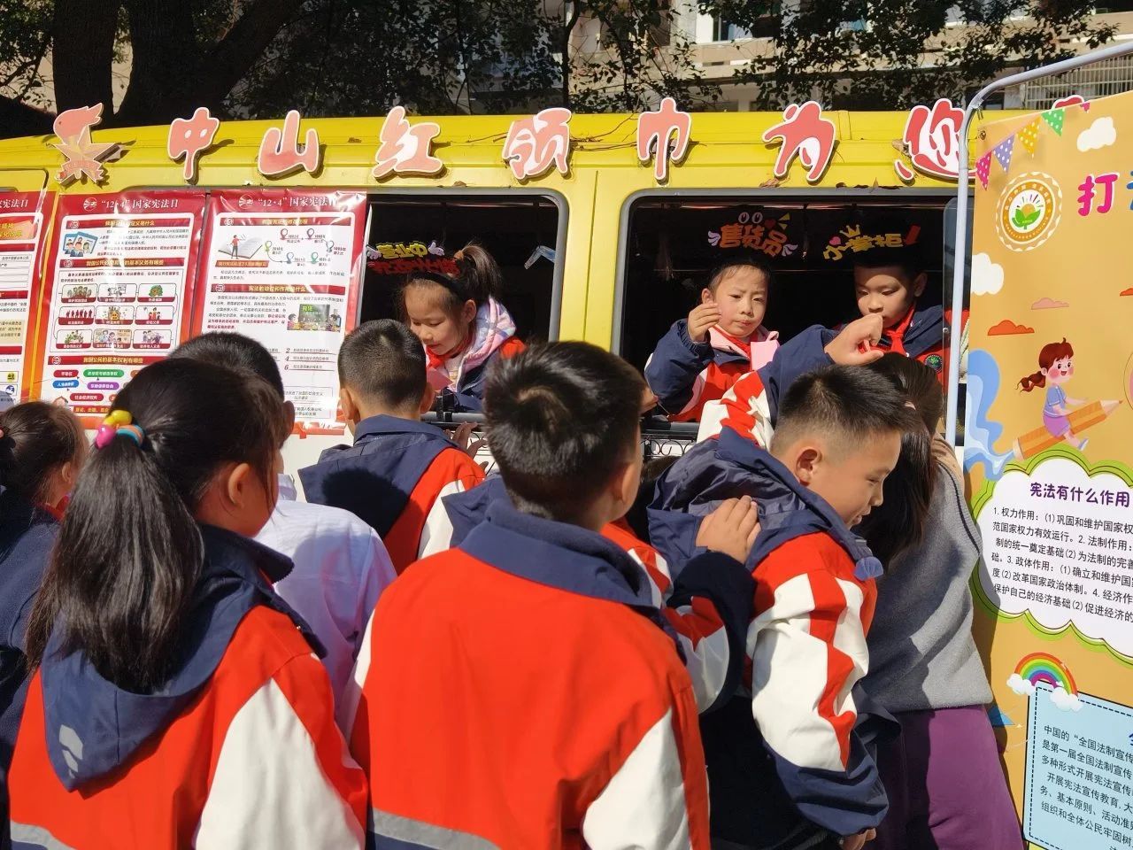 丽水市莲都区中山小学教育集团一系列学法普法活动生动开展,其中,学校行知巴士站活动会在每天中午1点至1点20分,开展“宪法在心中,守法伴童行”宪法知识有奖竞答,通过互动形式激发国产自拍 学习宪法的热情。