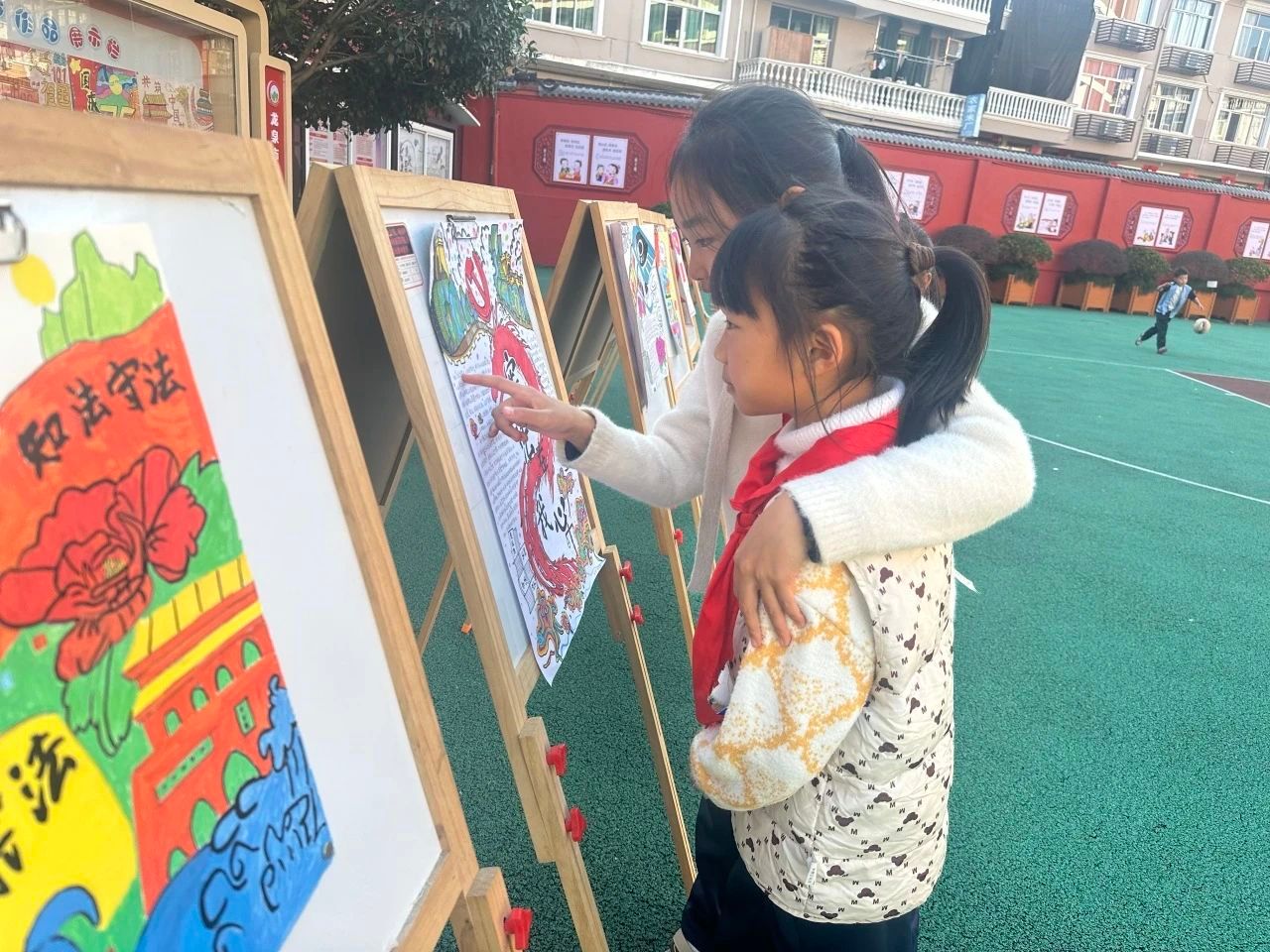 平阳县萧江镇第四小学开展了丰富的宪法周活动,一二年级的孩子用稚嫩的小手绘画出一张张富有童趣的宪法宣传画;三四年级的孩子发挥创造力,制作出精美而富有意义的手抄报;五六年级的孩子则开展宪法知识竞答,孩子们积极自信,展现了对宪法知识的扎实掌握。