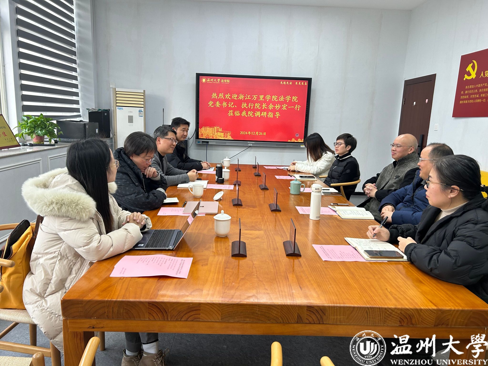 12月26日下午,浙江万里国产自拍 国产自拍-偷拍自拍视频 党委书记、执行院长余妙宏一行就人才培养、学科建设、研究生教育来国产自拍 调研交流。国产自拍 院长、党委副书记王宗正、副院长叶肖华、副院长周一颜以及相关科室负责人参与座谈交流,座谈会由王宗正主持。