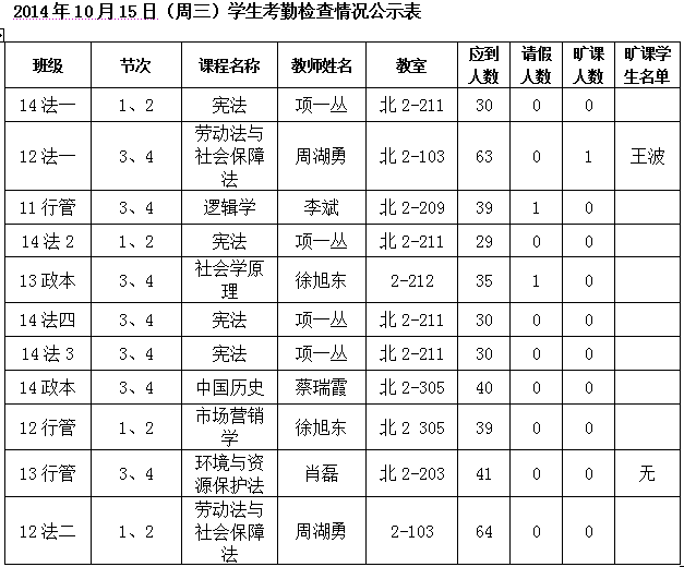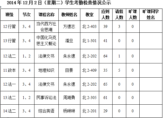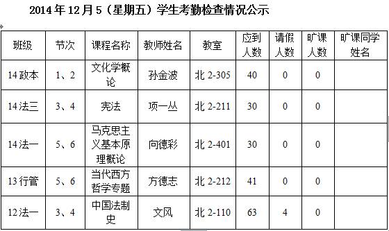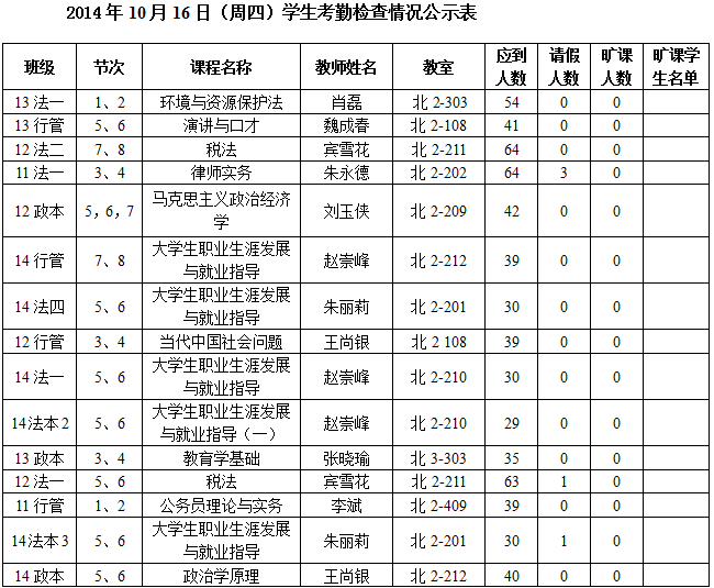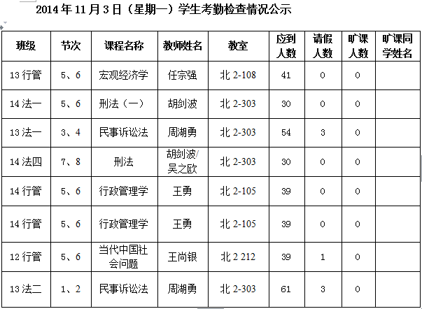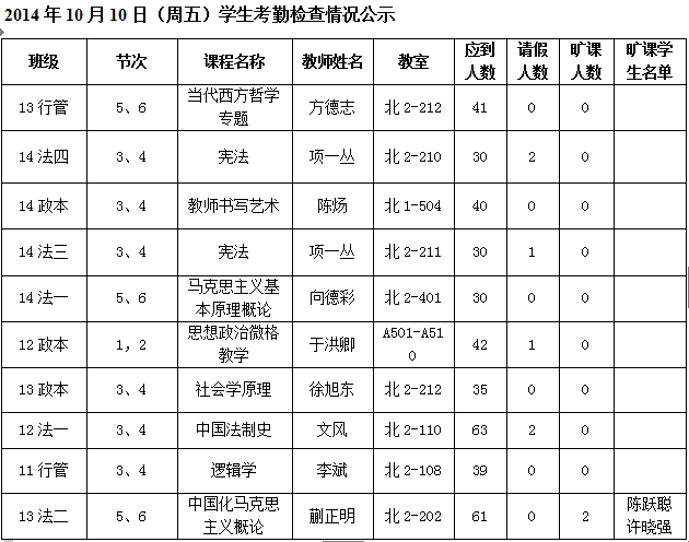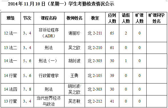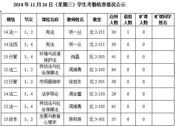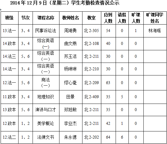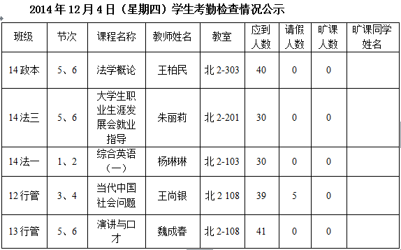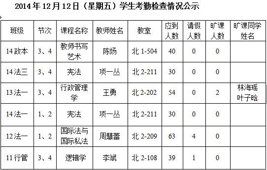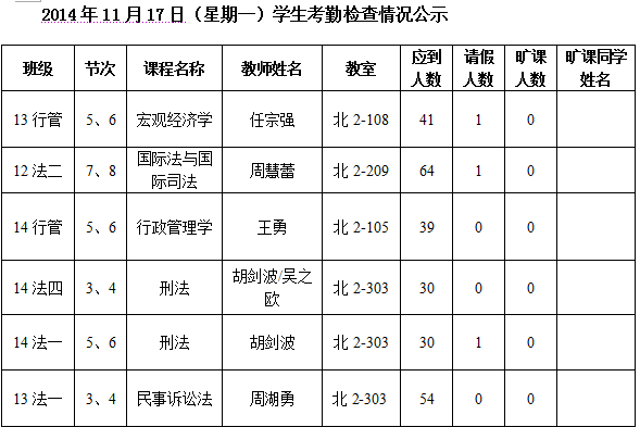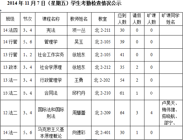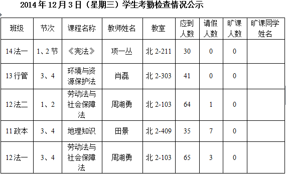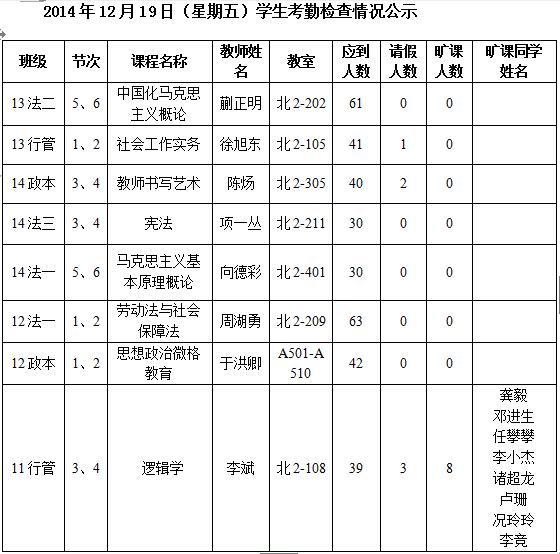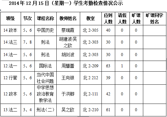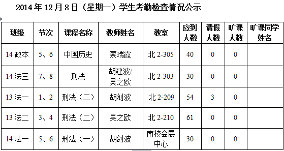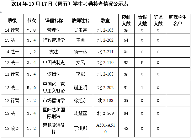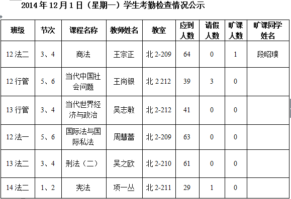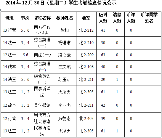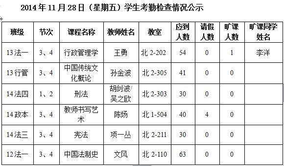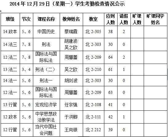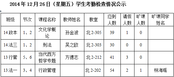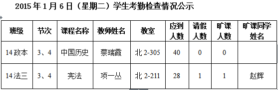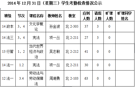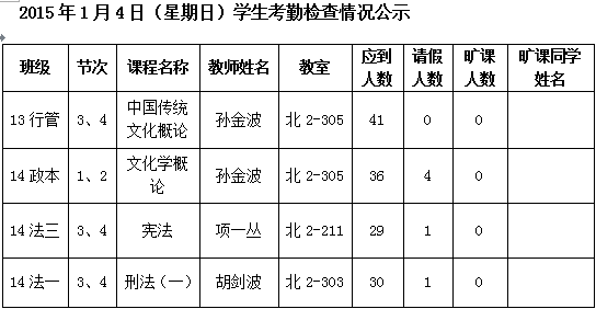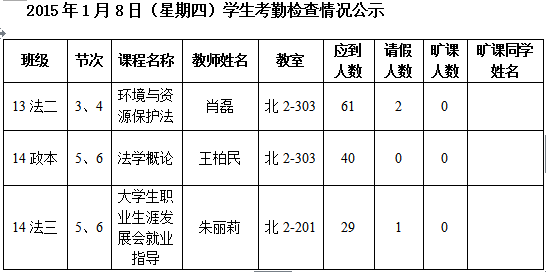 法政国产自拍 考勤检查情况公示—1月8日更新