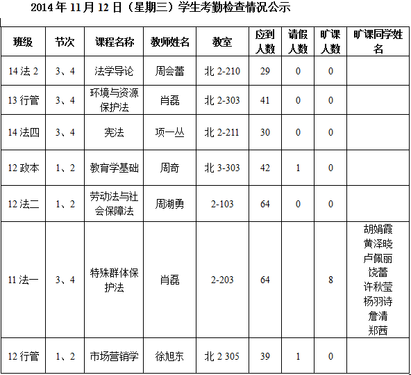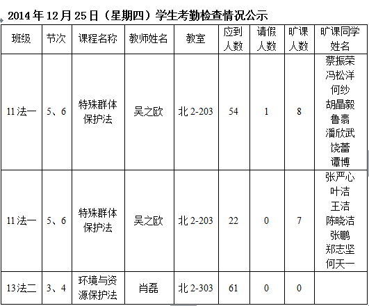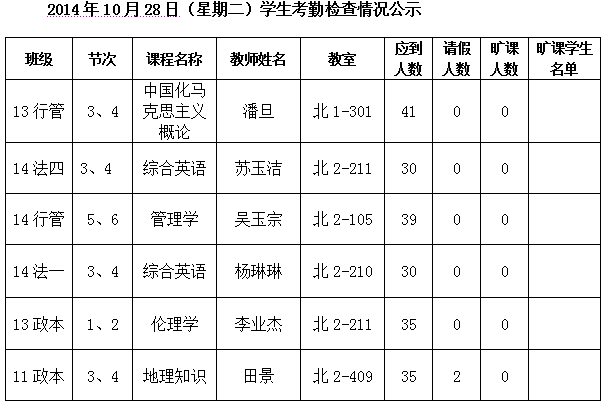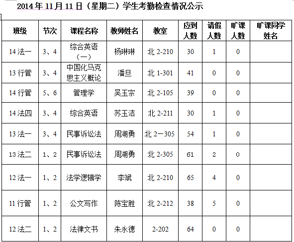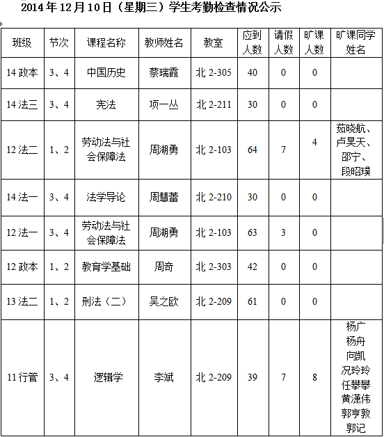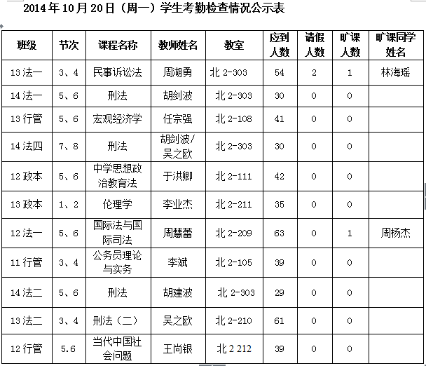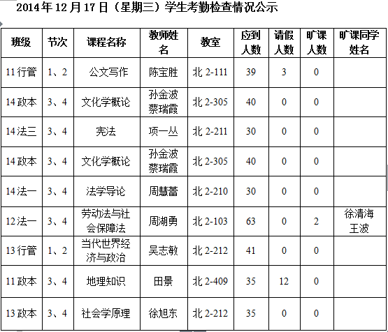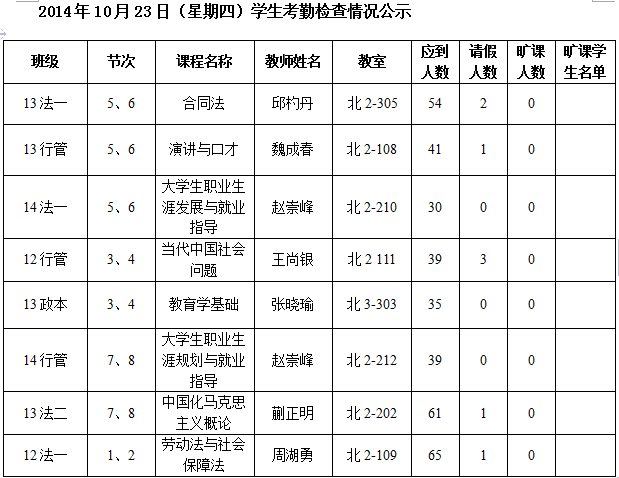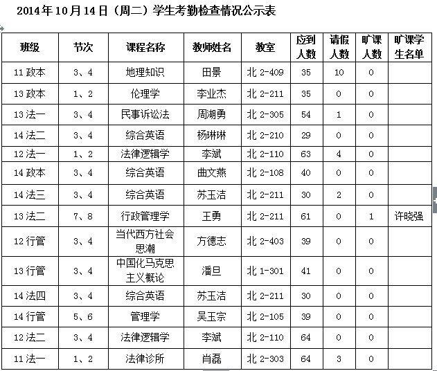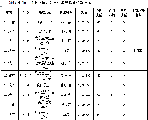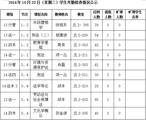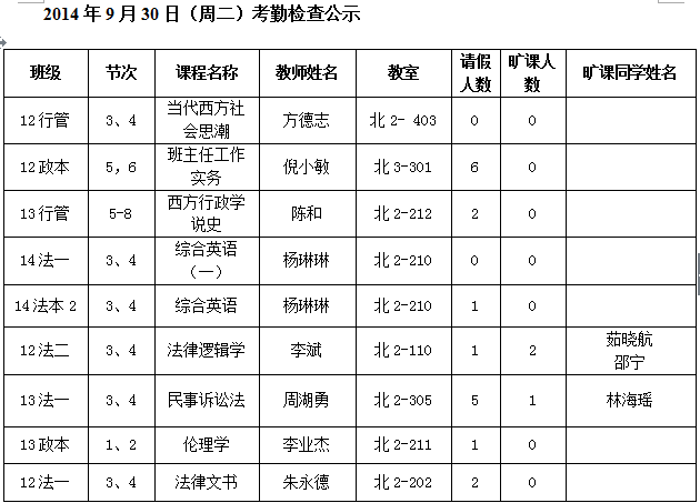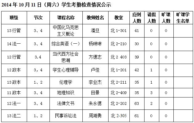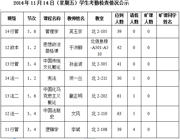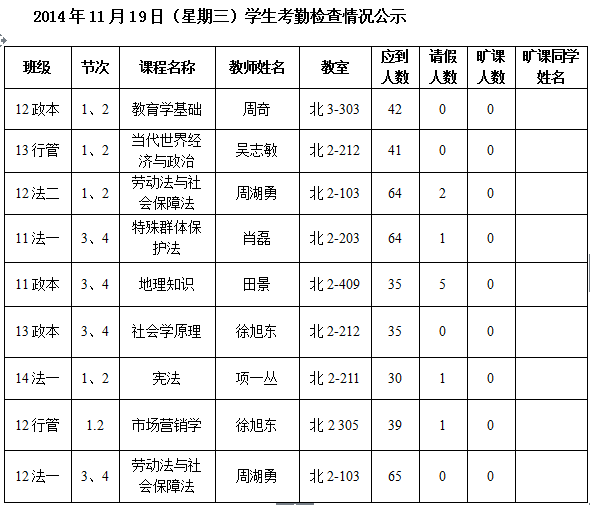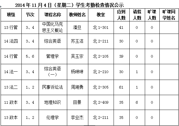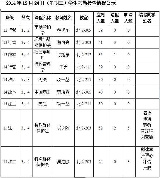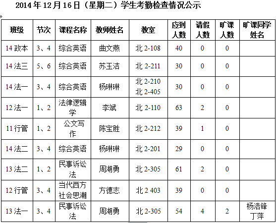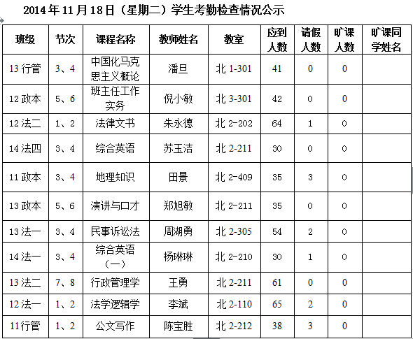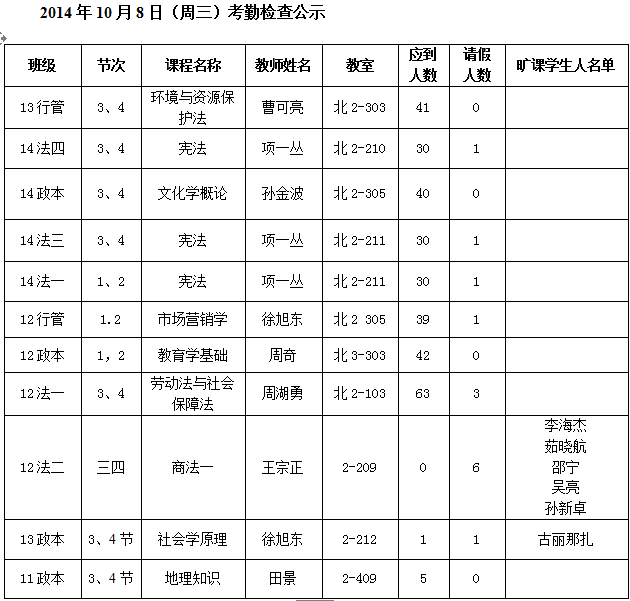 法政国产自拍 考勤检查情况公示—1月8日更新