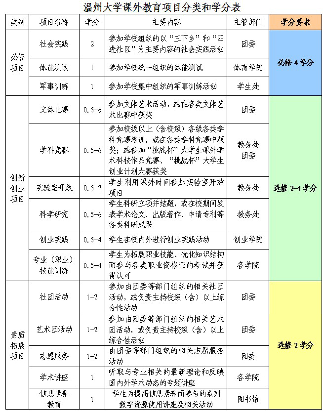 5.社团活动。参加社团活动满一年,符合出勤率要求的同学可以申请课外学分。