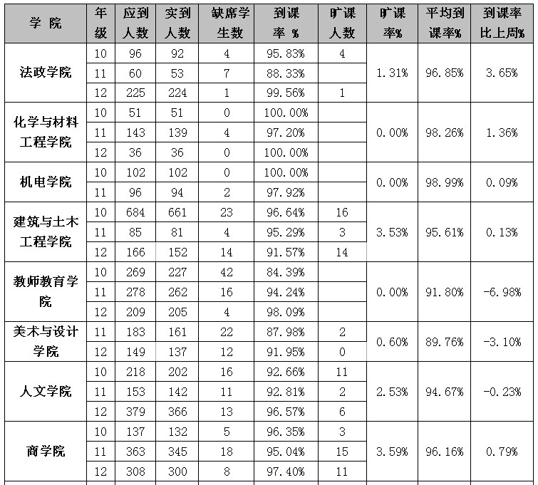 3月25日—3月29日全校学风检查情况汇总