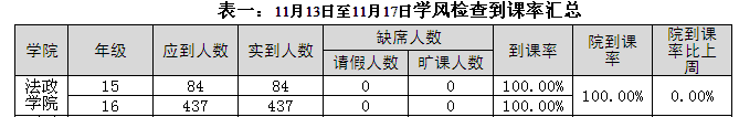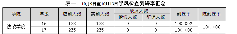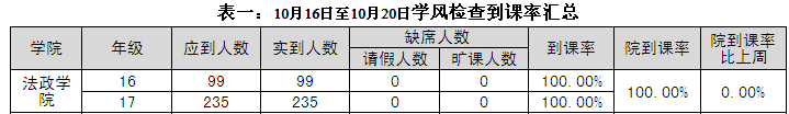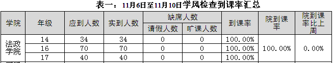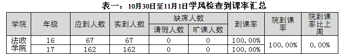 2017年11月6日至2017年11月10日,国产自拍 处组织人员对校本部110个班级的国产自拍 上课情况进行抽查。从抽查情况来看,国产自拍 上课秩序良好,上课教师普遍提前到达教室。法政国产自拍 具体情况反映如下: