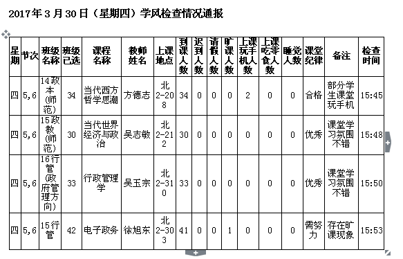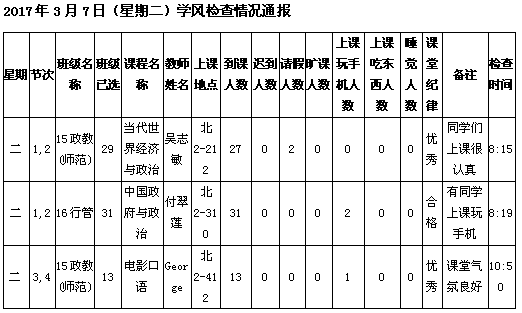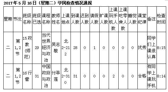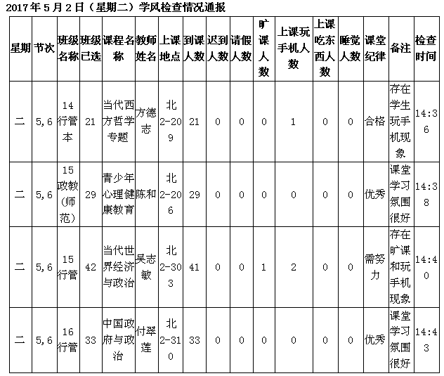 良好;2.合格,人员到齐或有请假,纪律一般;