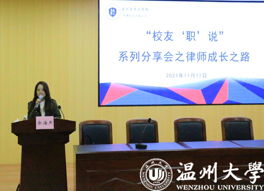11月11日晚,国产自拍-偷拍自拍视频 “校友‘职’说系列之律师分享会在北2-301举行。本次讲座邀请了优秀校友佘海燕、吴成情两位业界精英律师与同学分享优秀律师成长之路。