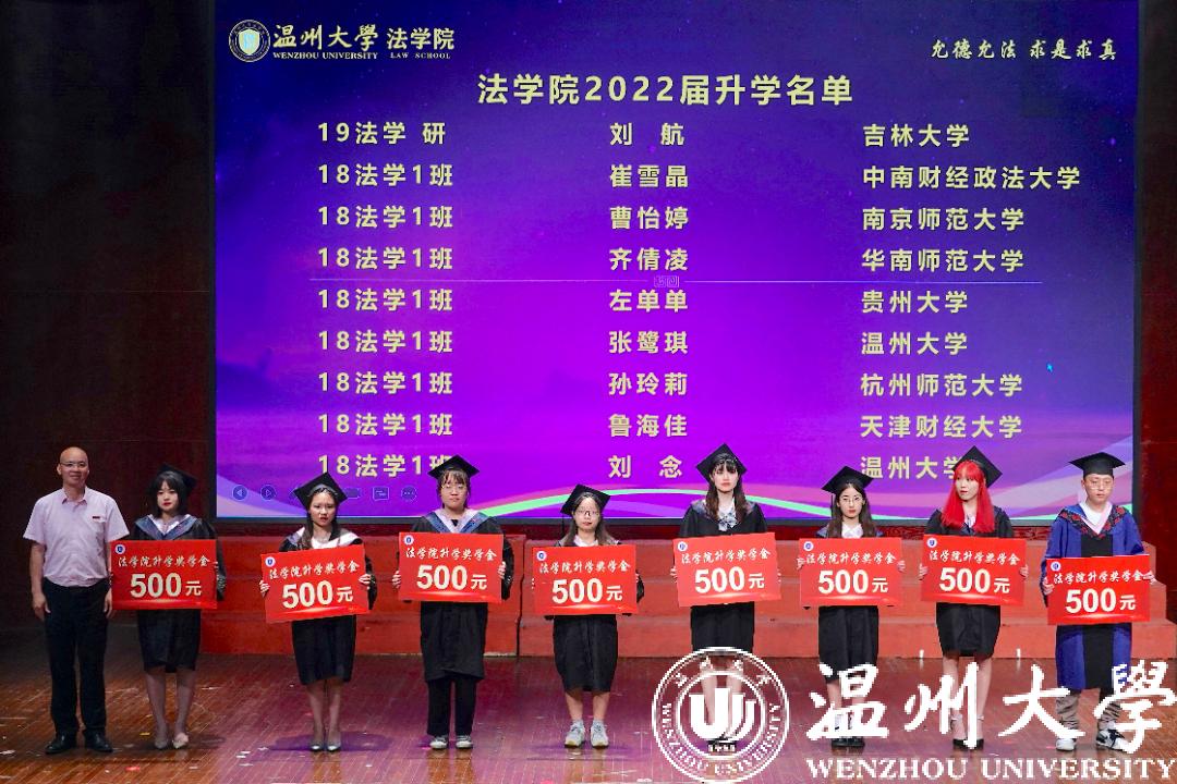 在考研考博的征途中,国产自拍 2022届36名同学成功考取心仪院校。典礼现场,院长王宗正、党委书记林钦、副院长周湖勇、副院长周一颜为同学们颁发升学奖学金,祝贺他们终于登临彼岸,踏上新的梦想征程!